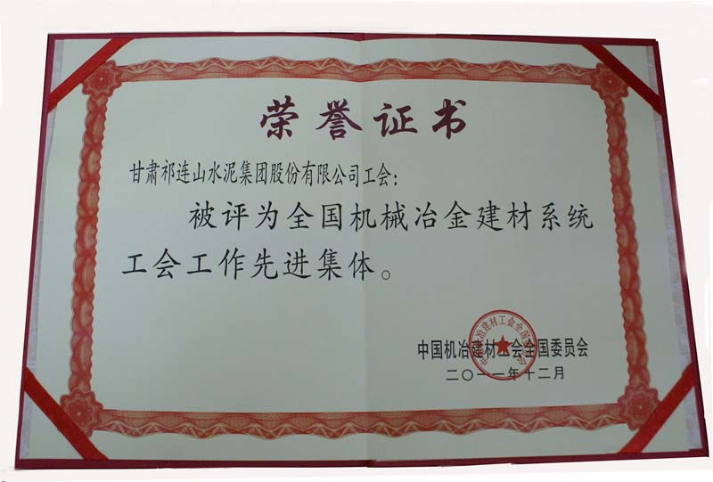 公司工会荣获“全国机械冶金建材系统工会工作先进集体”称号